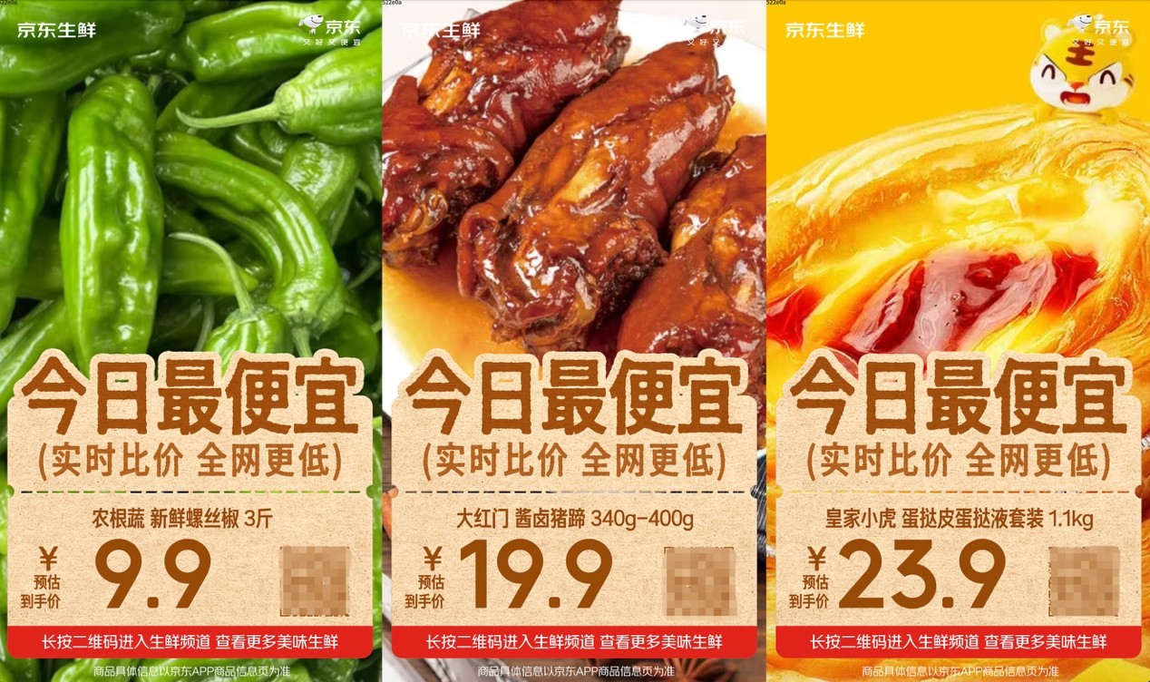 以最新上线的几款新品为例,农根蔬崭新螺丝椒为农家自种时令蔬菜,皮薄个大、风韵浓郁,3斤仅售9.9元,比其他平台优惠20%以上;皇家小虎蛋挞套装,包含30个蛋挞皮和1盒蛋挞液,自带锡纸托,适配空气炸锅,京东仅售23.9元,较其他平台低廉近10元;大红门酱卤猪蹄,酱香入味、开袋即食,售价低至19.9元,也低于其他平台25.77元的最廉价,性价比可谓拉满。