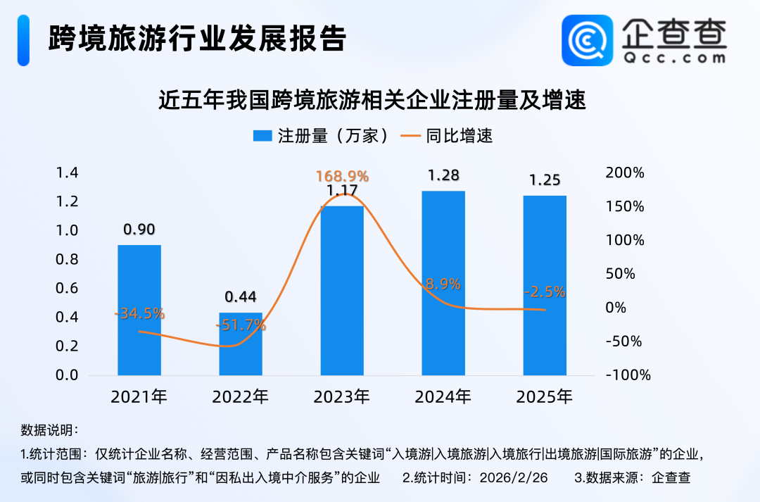 企查查数据知道,律例2月26日,我国现有11.5万家跨境旅游有关企业,区域踱步上,华东地区最多,占比26.2%。注册量方面,2021年以来,我国跨境旅游有关企业注册量冉冉厚确切1万家以上最新股票配资,2023年—2025年调处三年每年注册量均超1万家。其中2025年全年跨境旅游有关企业注册量达1.25万家;区域踱步上,与企业存量区域踱步不同的是,2025年注册的1.25万家跨境旅游有关企业中,踱步在华北地区的有关企业最多,占比25.0%,其次是华东地区,占比24.2%。